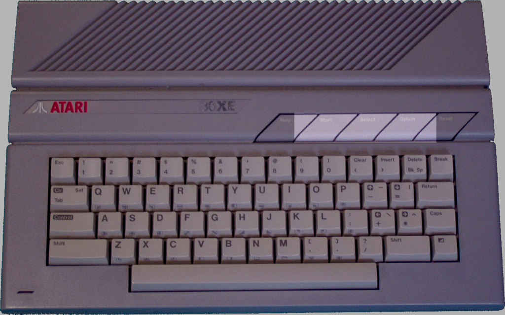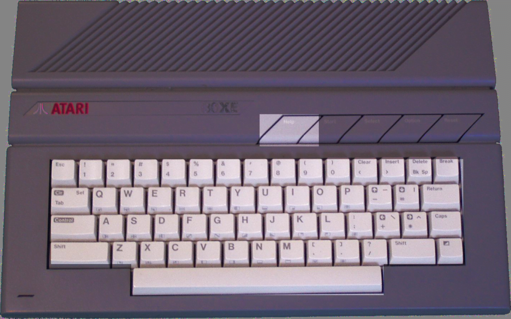 A ten przystojniak tylko udaje klawisz. Jego funkcja zabrzmi nieco medycznie bo to zwieracz. W jakimś artku ktoś napisał że „wdusił” RESET, to wiele mówi o tym klawiszu. Wduszenie go w modelu XE jest nawet ciekawe, szczególnie kiedy wczytanie gry w normalu trwało 30 minut i akurat kolega niechcący wdusił JEGO zamiast sąsiada bo tak był rozedrgany z podniecenia że nie było LOAD ERROR. No i teraz dopóki go nie zwolni można nadal grać, bo pomimo że to zwieracz to pokrętna elektronika zauważy jego (znowu zabrzmi medycznie) rozwarcie.